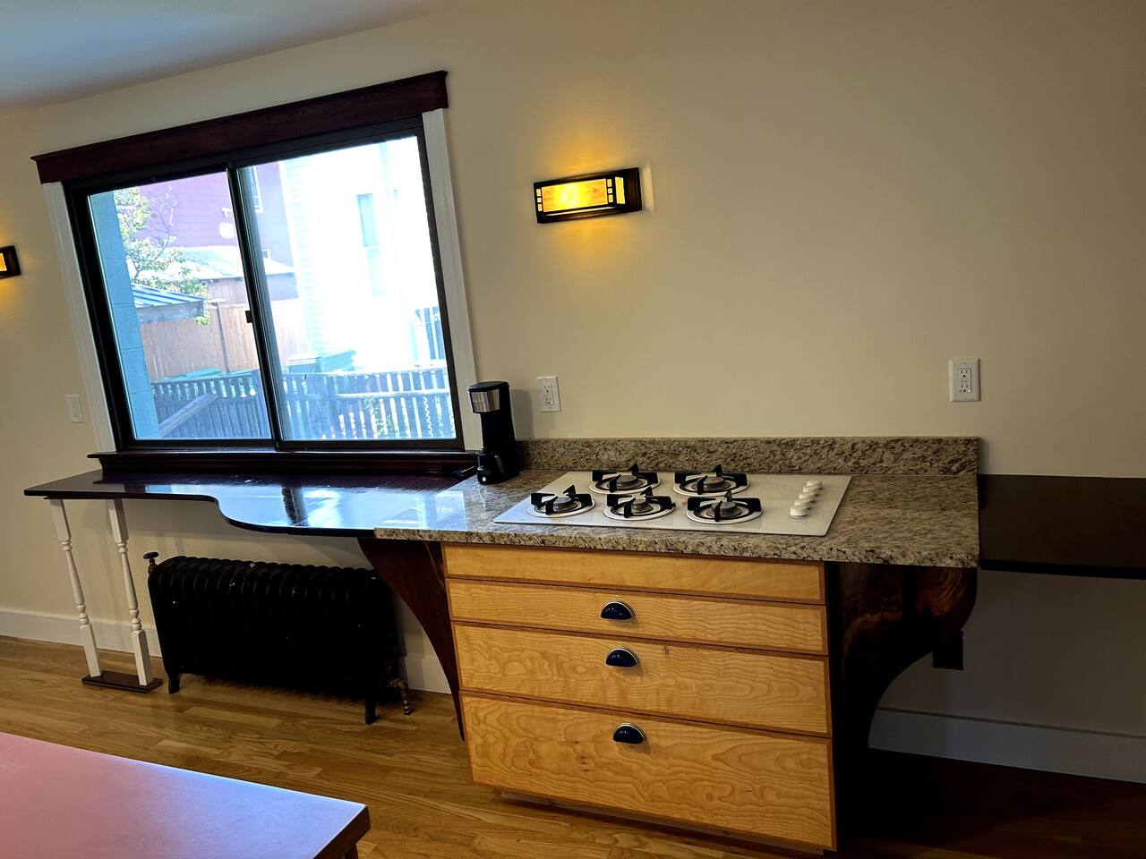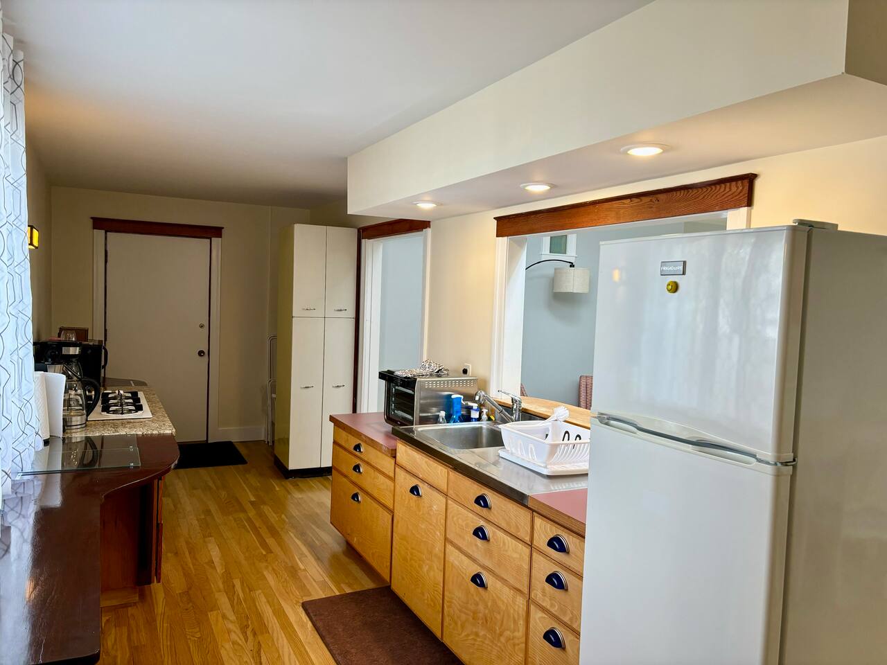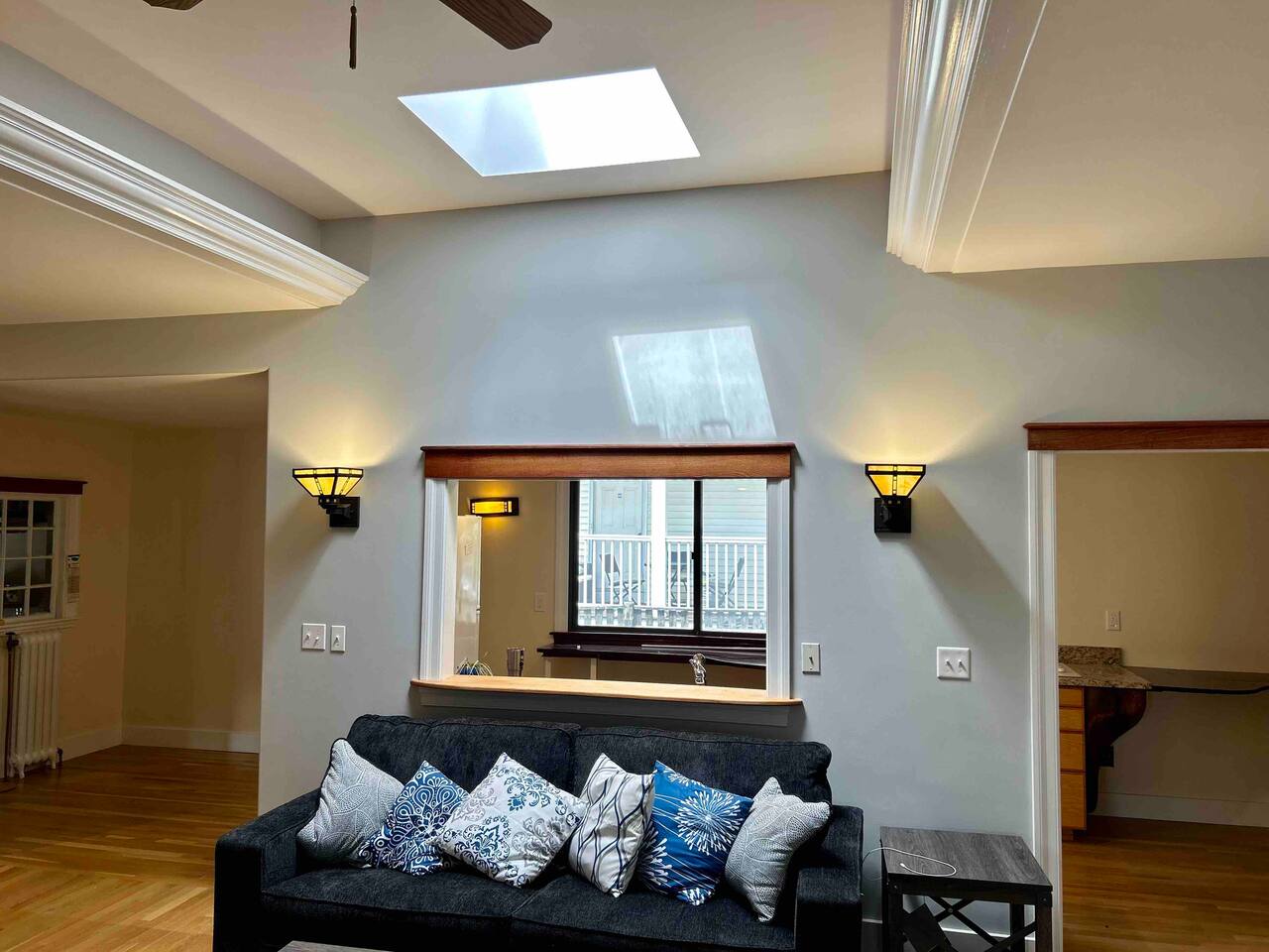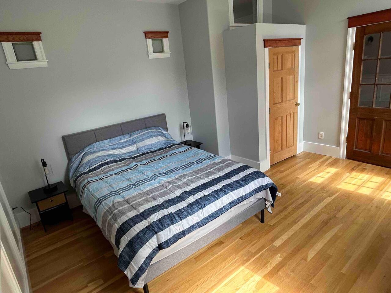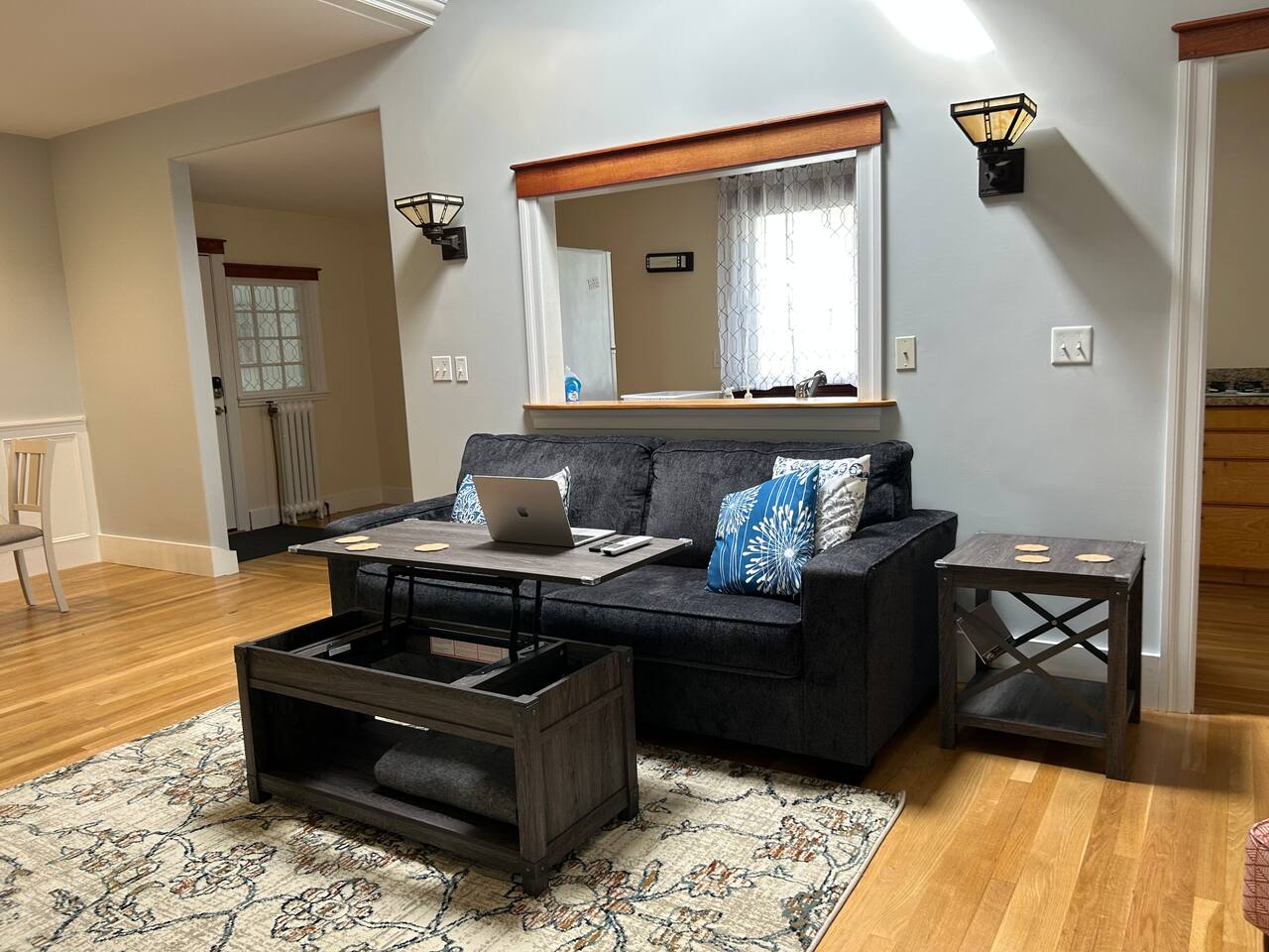 Welcome to our ground-floor apartment, easily accessible from our dedicated off-street parking space. Situated in the lively and vibrant area of West Medford, our ground-floor apartment offers the best of both worlds. With a walk score of 91, you'll find yourself in a walker's paradise, where daily errands don't require a car. Moreover, our excellent traffic score of 80 means you'll have easy access to other parts of the city, making it convenient for both short trips and daily commuting. While you're right in the heart of it all, our apartment is tucked away at the back of the property, giving you a peaceful and quiet retreat in the midst of the city's lively energy. Bedrooms - The apartment offers two sizable bedrooms, both equipped with queen-size beds. Linens, pillows, and storage space are standard in each room. Two twin-size beds are available upon request to accommodate a group of 8. Living Space - The living room provides ample space and is furnished with a mix of modern and functional pieces. A pull-out couch is also available for additional sleeping arrangements if needed. YouTube TV with all channells. Kitchen Amenities - The kitchen comes with standard appliances for basic cooking needs, including a gas cooktop, fridge, countertop oven, and microwave. Although we don't have a full-sized oven or a dishwasher, the space is practical for preparing simple meals and snacks. Climate Control: The apartment has a heating and cooling system to ensure comfort throughout the year. Parking: Allocated parking spot and access to a Level 2 fast EV charger.